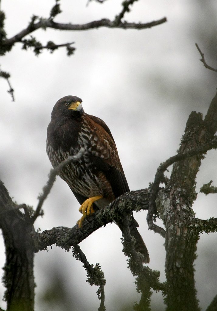 The park is home to a variety of animals. During my stay, I encountered roadrunners, hawks, javelinas, deer, coyote, many birds including green jays (Birds of Falcon State Park), and something that crossed the road in front of me during the foggy daylight morning. Gone in the brush before I could determine what it was, my first thought was some sort of large cat. At almost the same time I saw a doe and yearling in front of me and then a hawk in my periphereal vision that was in a tree very close to the road and right off of the Verdin Trail. I backtracked, picked up the camera and took the shot through the open passenger window. Later, while hiking the Verdin Trail, I came across the whole family. Harris’s hawks. How cool. You can read about them here.